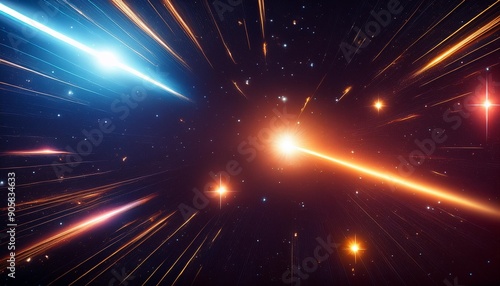 Wall mural : Abstract background of outer space with ultra bright stars and comets on the theme of explosions and