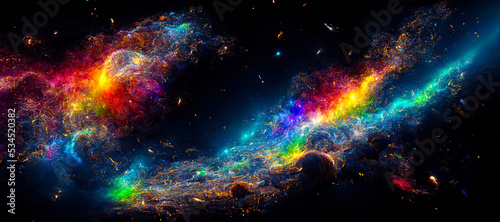 Wall mural abstract background of outer space with ultra bright stars and comets on the theme of explosions and