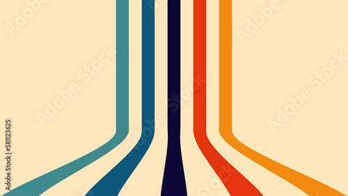 Wall mural abstract background of perspective lines design in 1970s hippie retro style. vector template ready f