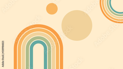 Wall mural abstract background of rainbow and sun groovy wavy line design in 1970s hippie retro style. vector p - Wall murals Wall mural abstract background of rainbow and sun groovy wavy line design in 1970s hippie retro style. vector p - Wall murals