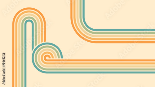 Wall mural abstract background of rainbow groovy wavy line design in 1970s hippie retro style. vector pattern r - Wall murals Wall mural abstract background of rainbow groovy wavy line design in 1970s hippie retro style. vector pattern r - Wall murals