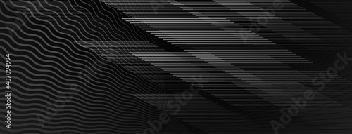 Wall mural : Abstract background of straight and wavy intersecting lines in black and gray colors