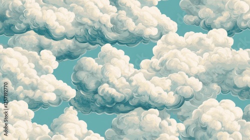 Wall mural : Abstract background of white clouds in the sky - blue sky with fluffy clouds