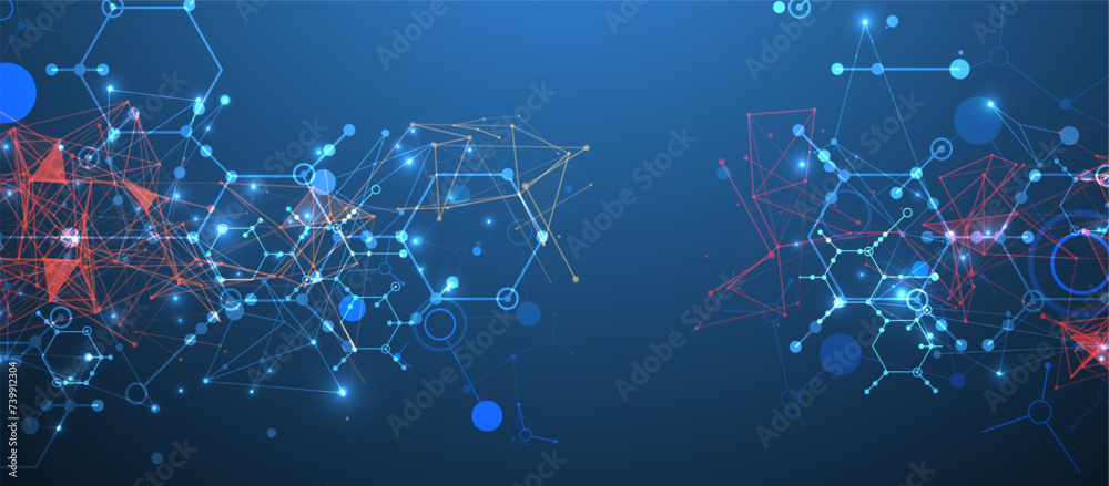 Wall mural abstract background on a scientific and technological theme. an image of hexagons on a dark blue bac