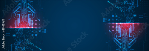 Wall mural abstract background on technological and scientific topics. plexus effect with various techno detail