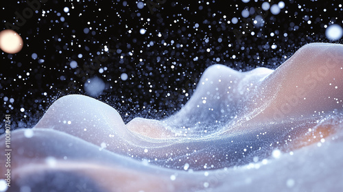 Wall mural : Abstract background showing wavy surface covered with sparkling particles falling on black backgroun