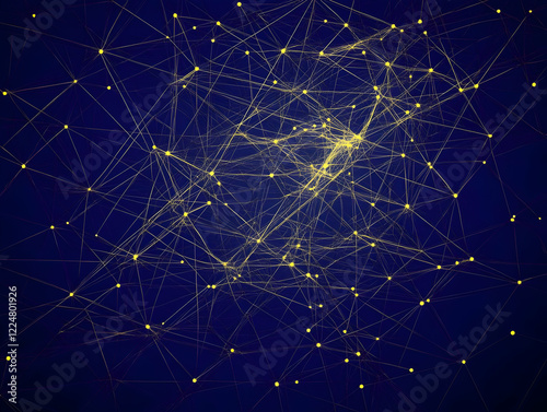 Wall mural abstract background shows network connections with yellow nodes and lines on dark blue. - Wall murals Wall mural abstract background shows network connections with yellow nodes and lines on dark blue. - Wall murals