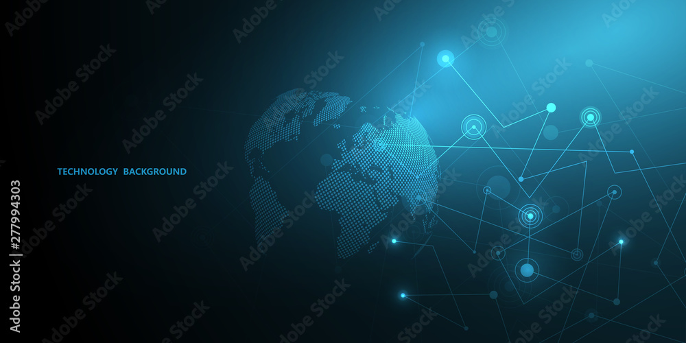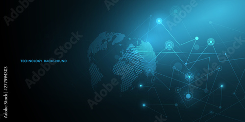 Wall mural : Abstract background technology and science graphic design - connecting dots and lines - internet connec