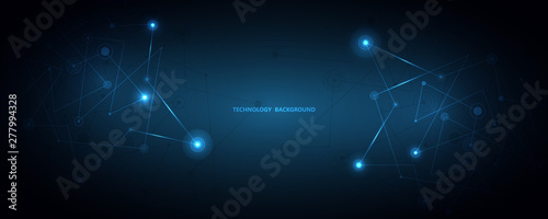 Wall mural : Abstract background technology and science graphic design - connecting dots and lines - internet connec