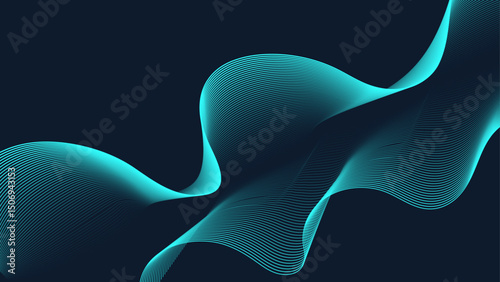 The watermark will not be included on Wall mural.: Abstract background wave line pattern - futuristic technology background with dynamic curve blue gree