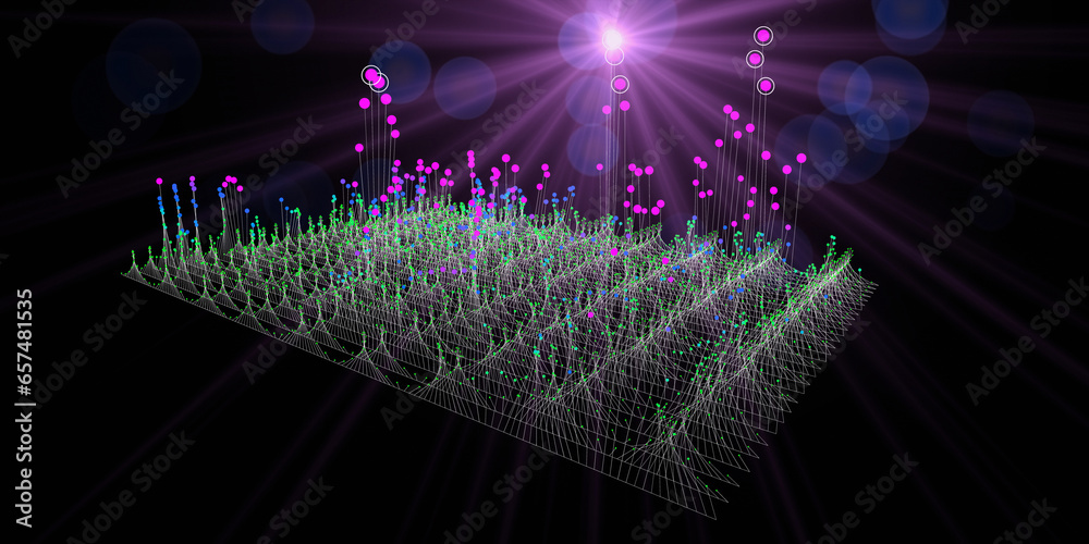 Abstract background wireframe array from blurred lines and color dots with light - big data - technoloWall mural