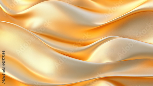Wall mural : Abstract background with 3d wave bright gold gradient silk fabric, detailed hyper realistic image
