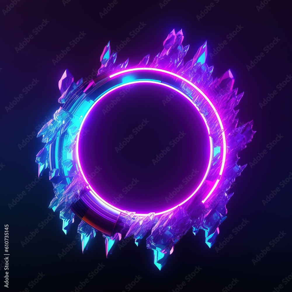 The watermark will not be included on Wall mural.: Abstract background with a frame - abstract neon background with crystals - generative ai