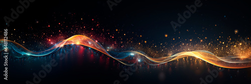 Wall mural : Abstract background with a trail of swirling glowing multi colored pollen from a magic wand on a dar