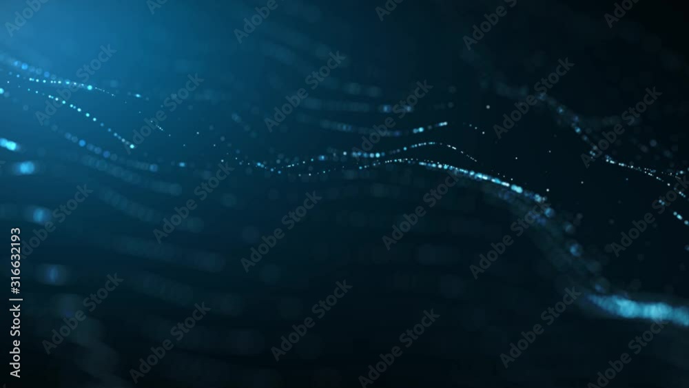 Wall mural : Abstract background with animation of technology data transfer - artistic blurred dots with glow effe