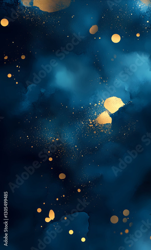Wall mural : Abstract background with blue and gold glitter and bokeh effect