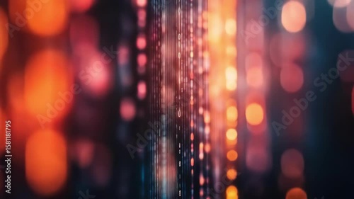 Wall mural abstract background with colorful bokeh and digital stream effect