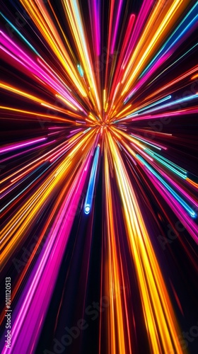 Wall mural : Abstract background with colorful light trails converging in the center