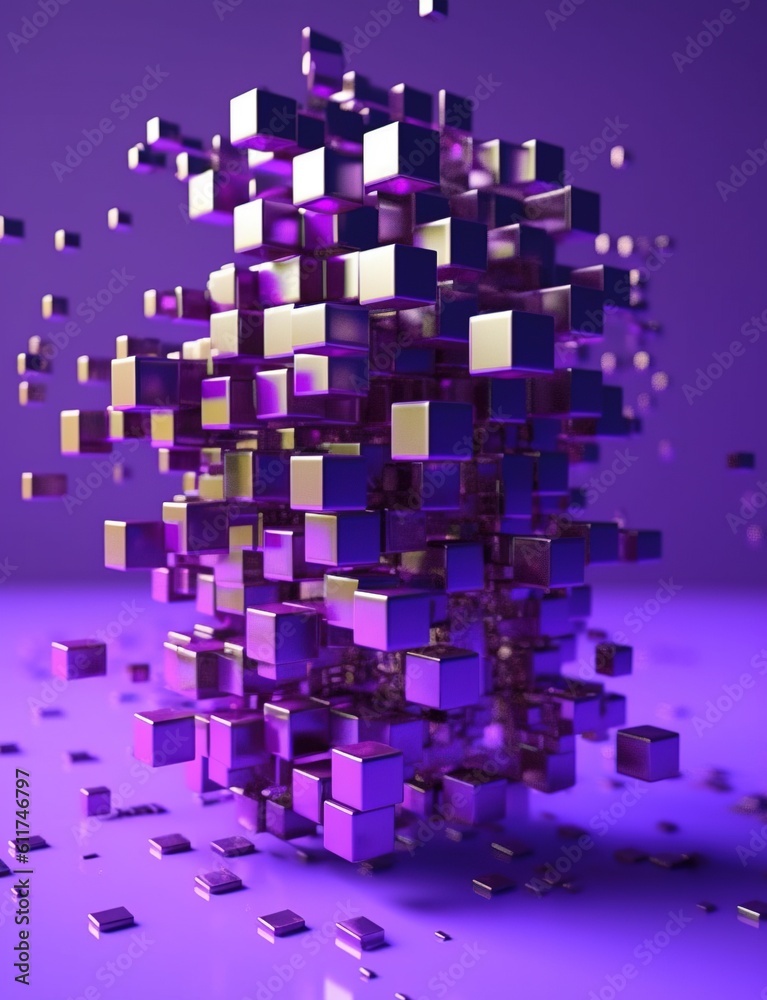 The watermark will not be included on Wall mural.: Abstract background with cubes - different size cubes connecting - generative ai