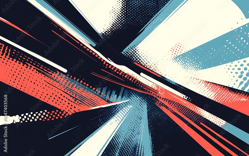 Abstract background with diagonal lines, dots and halftone pattern in blue, red, black and white colWall mural
