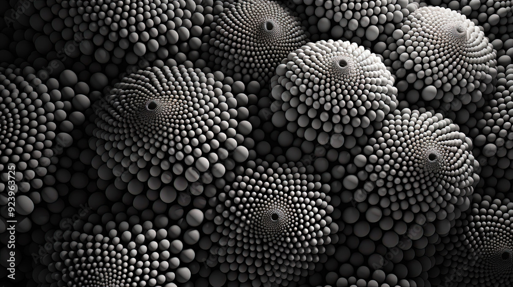 The watermark will not be included on Wall mural.: Abstract background with dotted fractal ornament and science styled cellular mesh