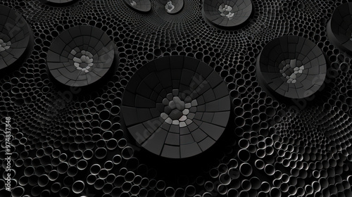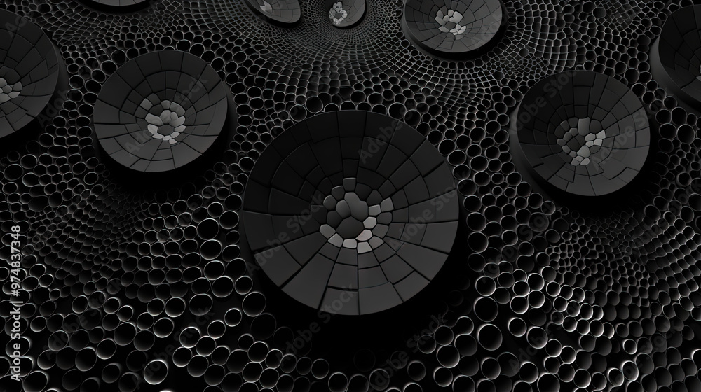 The watermark will not be included on Wall mural.: Abstract background with dotted fractal ornament and science styled cellular mesh