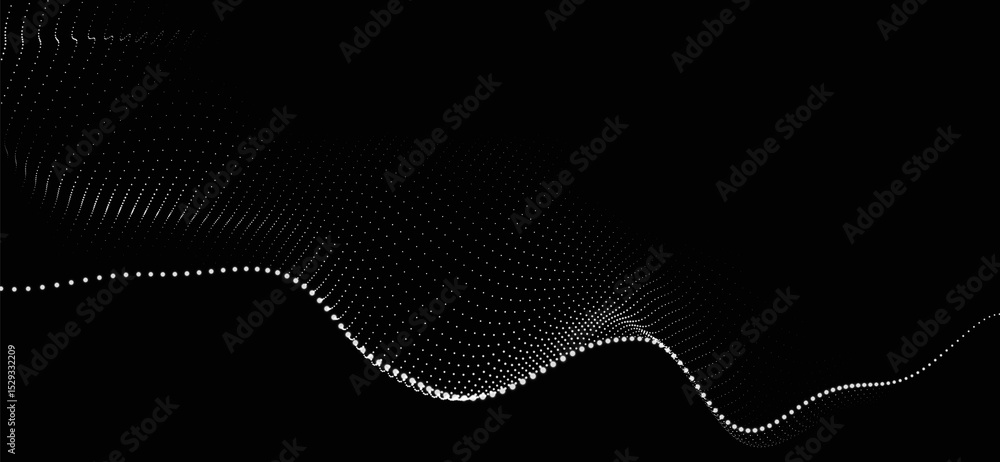 Wall mural : Abstract background with dynamic black and white wave - futuristic dotted wave of bright particles on