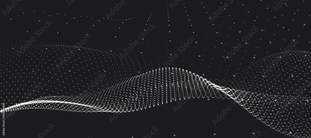 Wall mural abstract background with dynamic black and white wave. futuristic dotted wave of bright particles on