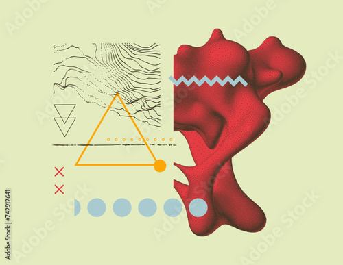 The watermark will not be included on Wall mural.: Abstract background with flowing liquid shape - 3d fluid graphic element - composition in dotwork styl