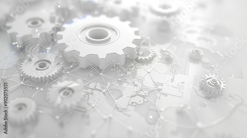 Wall mural abstract background with gears and technology elements in gray color on white background, digital te