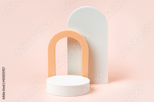 Wall mural abstract background with geometric forms and podiums in pastel color for product presentation. podiu