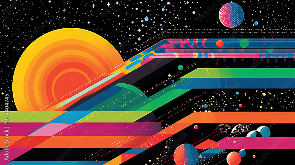 The watermark will not be included on Wall mural.: Abstract background with geometric shapes in retro minimalistic style with bright colors