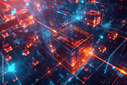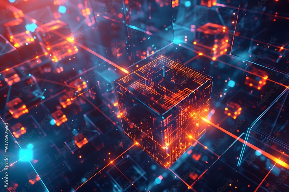Wall mural abstract background with glowing lights data cube technology concept. futuristic technology abstract