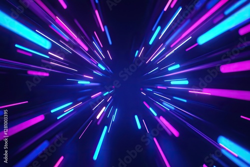Wall mural : Abstract background with glowing neon lines radiating outwards, creating a dynamic and energetic vis
