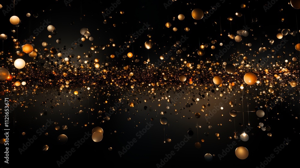 Wall mural abstract background with golden and bronze spheres floating in dark space. - Wall murals Wall mural abstract background with golden and bronze spheres floating in dark space. - Wall murals