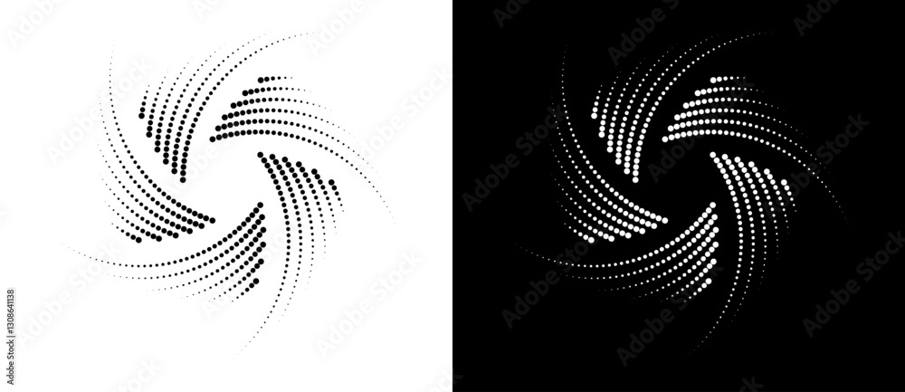 The watermark will not be included on Wall mural.: Abstract background with halftone dots in spiral - modern circle dotted pattern - black shape on a whi