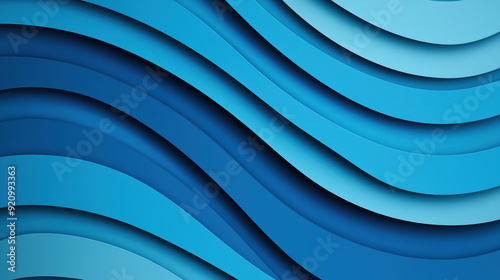Wall mural abstract background with layered blue waves. modern design template with smooth, curved shapes creat