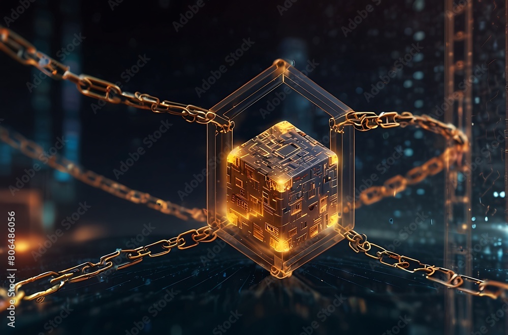 Wall mural abstract background with lights digital blockchain link futuristic network security