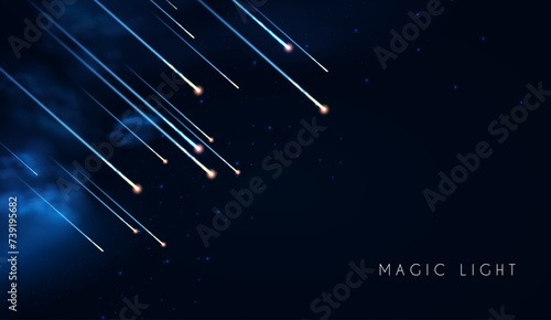 Wall mural abstract background with motion light. space, cosmos, firework and comet light effect. flyin asteroi