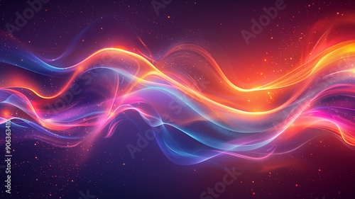 Wall mural : Abstract background with neon waves and dots on abstract light background