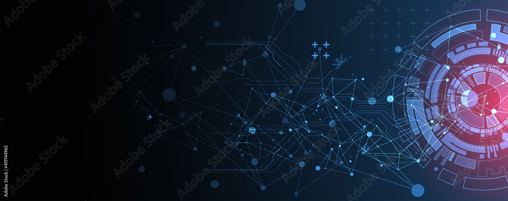 Wall mural : Abstract background with plexus effect - scientific and technological concept with the use of technic