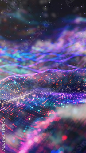 The watermark will not be included on Wall mural.: Abstract background with points in black waves