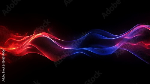 The watermark will not be included on Wall mural.: Abstract background with red and blue glowing line wave