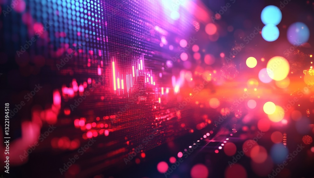 The watermark will not be included on Wall mural.: Abstract background with red and pink glowing data graph and bokeh lights - futuristic digital concep