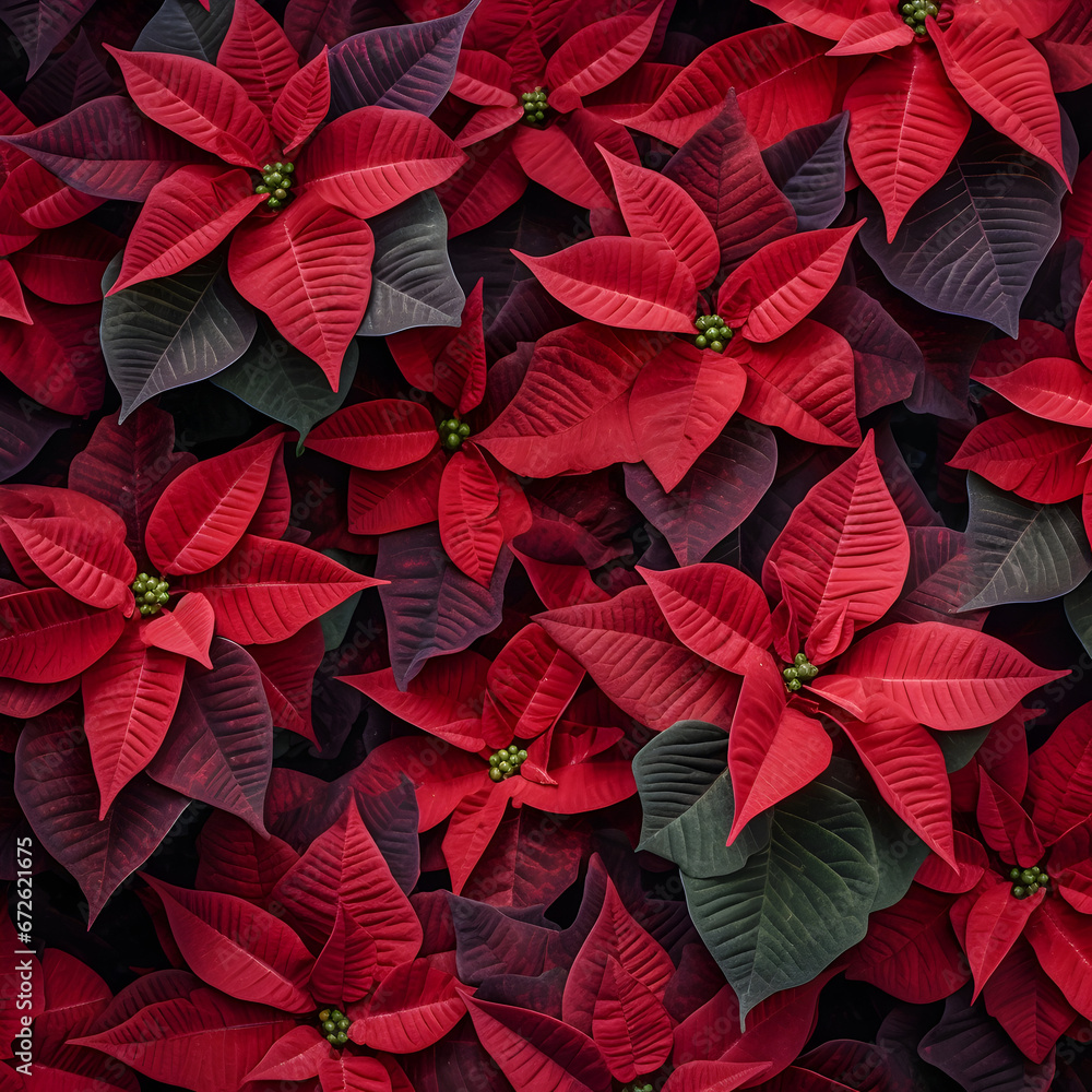 The watermark will not be included on Wall mural.: Abstract background with red poinsettia leaves - square composition -