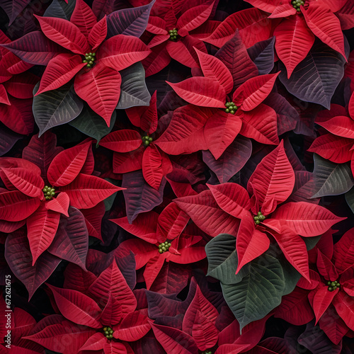 Wall mural abstract background with red poinsettia leaves. square composition.