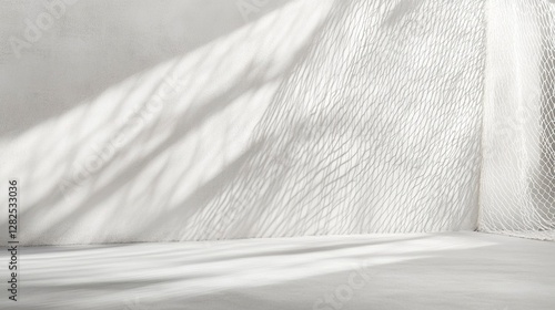 The watermark will not be included on Wall mural.: Abstract background with the shadow of a net on a white wall, with light and soft tones, in a minima