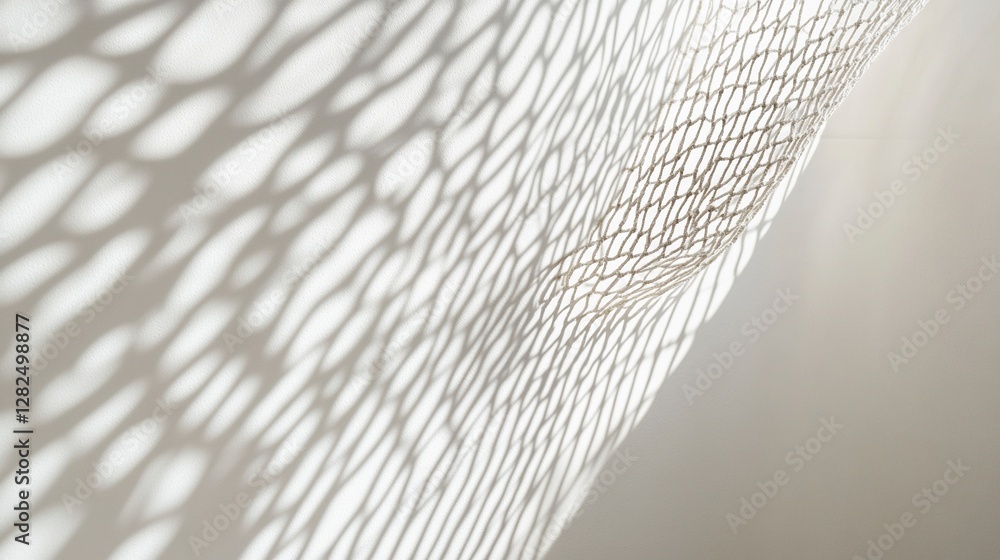 The watermark will not be included on Wall mural.: Abstract background with the shadow of a net on a white wall, with light and soft tones, in a minima
