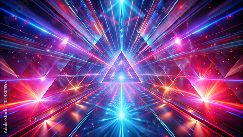 Wall mural : Abstract background with triangular rays radiating light in red, blue, and violet with a futuristic