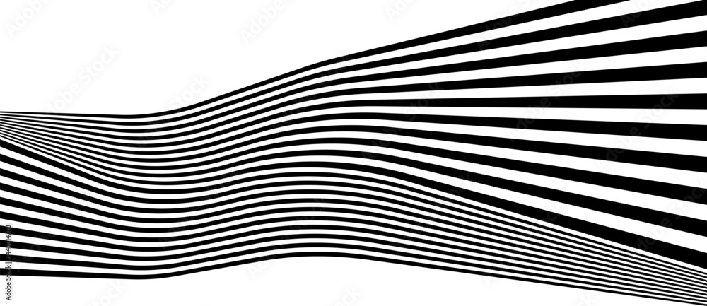 Wall mural abstract background with waves lines. illusion of dynamic transition. black lines on a white backgro